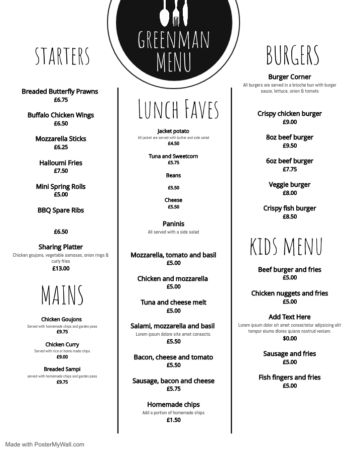 The Greenman Menu